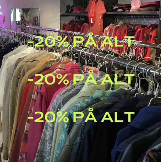 Butikken er åben hverdage 12-18 og lørdage 11-17. Du kan bruge din rabatpoint på alle varer eller betale alt for kroner – du bestemmer <33 OBS! Vi tager ikke imod indlevering af tøj i perioden.